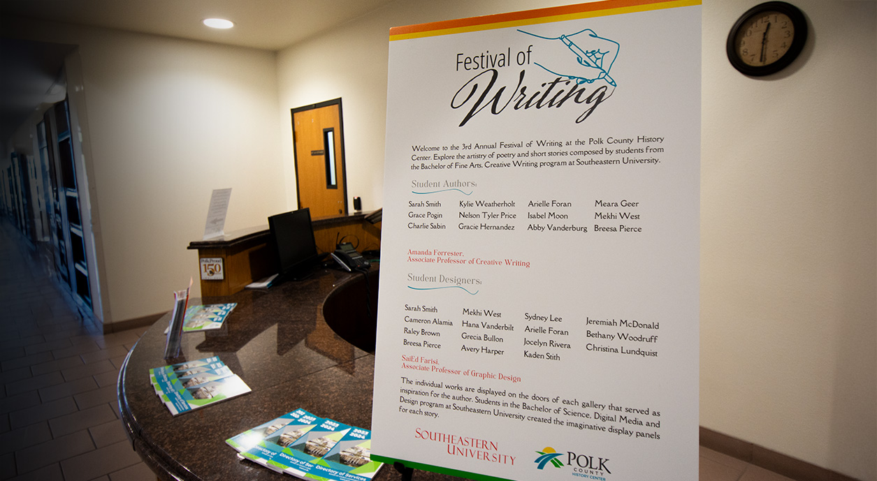 Festival Ekriti a prezante travay etidyan ekriti kreyatif ak konsepsyon grafik nan Southeastern University nan Polk County. Patenarya inik sa a montre kapasite etidyan yo pou entèprete istwa Polk County nan yon mwayen atistik, epi li ankouraje ladrès kolaborasyon enpòtan, ki esansyèl pou siksè nan lavni.