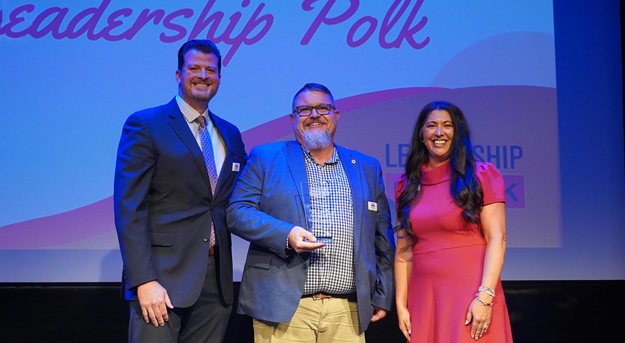 Polk County Emergency Management Director Paul Womble accepted the Spirit of Leadership Polk Award on behalf of the division.