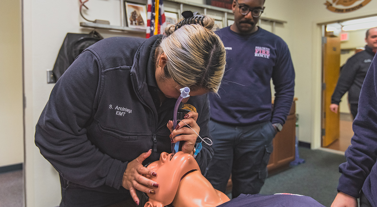 Bartow, Fla. (Oct. 15, 2025) — Polk County Fire Rescue’s (PCFR) ability to shape the next generation of public safety professionals took a leap forward as the organization recently became an accredited Emergency Medical Technician (EMT) training program. PCFR leadership and Emergency Medical Services (EMS) training staff headed up this department-wide accreditation effort.