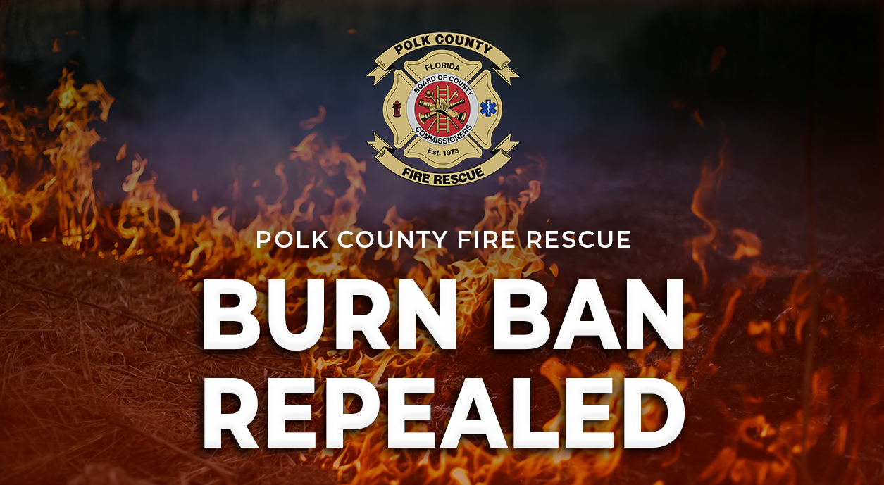 Bartow, Fla. (May 14, 2025) — Polk County is no longer under a burn ban. The burn ban, which went into effect on April 15, has been repealed.